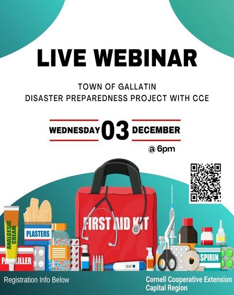 Join us on December 3rd at 6pm for an informational webinar on the disaster preparedness outreach project the Town of Gallatin completed with Cornell Cooperative Extension of Columbia-Greene Counties this year.