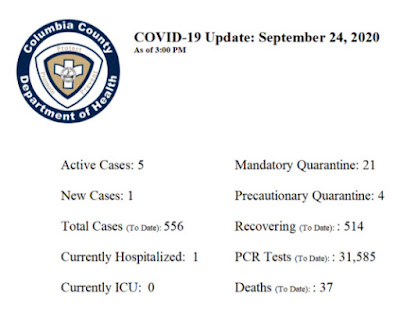 With one positive out of 238 test results received, the positive percentage rate for today is 0.4 percent.